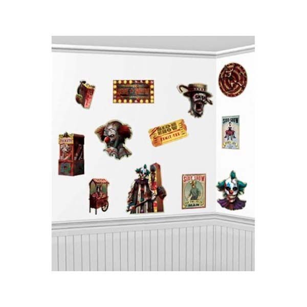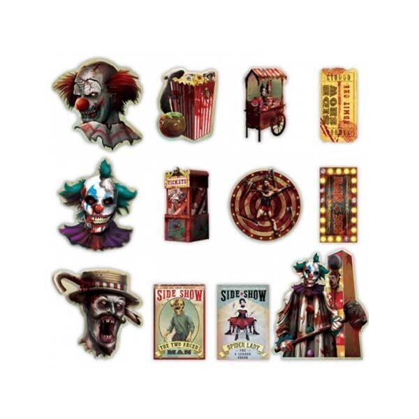 Большой комплект декораций на стену в стилистике Хэллоуина. Устройте страшную вечеринку! В набор входит 12 картонных полноцветных баннеров разных размеров. 1 баннер - 27, 9 см; 3 баннера - 22,8 см; 8 баннеров - 17,7 см. Материал: картон.
