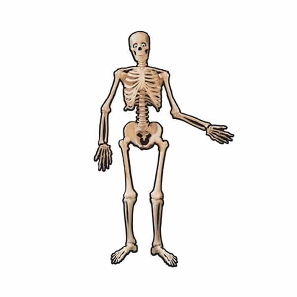 Скелет, размером почти в человеческий рост. Основные соединения костей скреплены металлической заклёпкой, что позволяет им двигаться и менять положение. Скелет может стоять, сидеть, махать Вам рукой или танцевать - всё зависит от Вашего воображения!