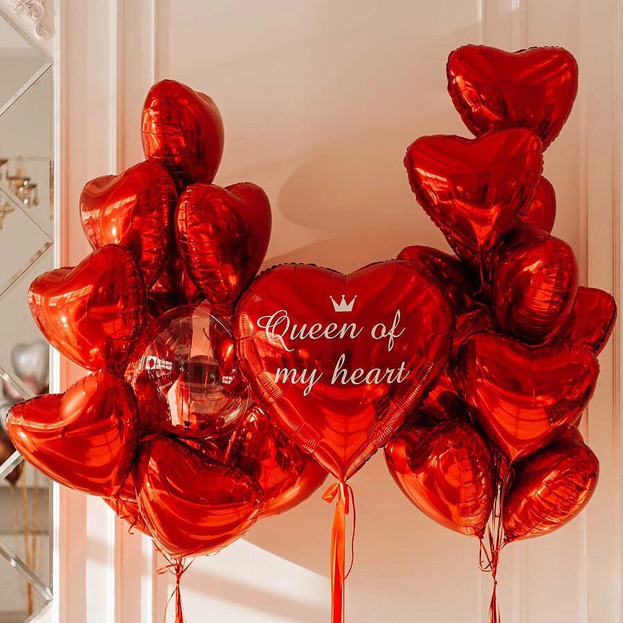 - Фонтан из 10 сердец и прозрачным шаром с перьями