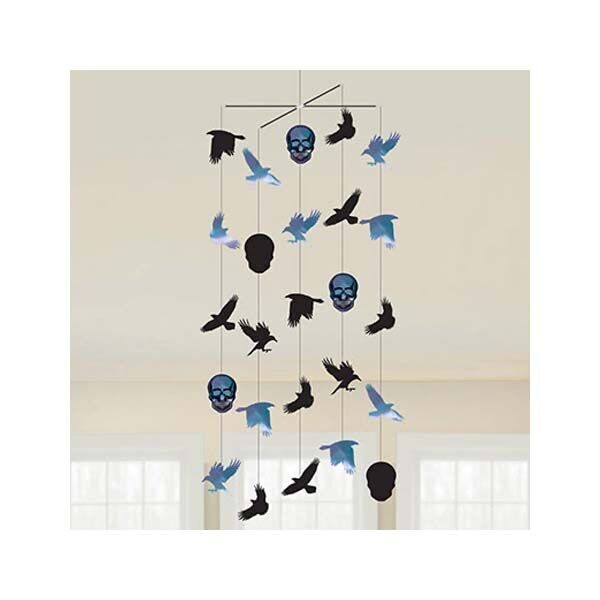 Черные вороны и переливающиеся черепа - отличные декорации для мрачного и стильного Хэллоуина. Подвесное украшение интерьера, мобиль. Диаметр 40см, высота 1м.
