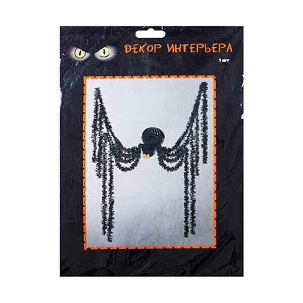 Объемный бумажный паук с длинными лапами, которого вы можете повесить в центре комнаты или посадить в угол или на окно. Размер декорации - 160см.