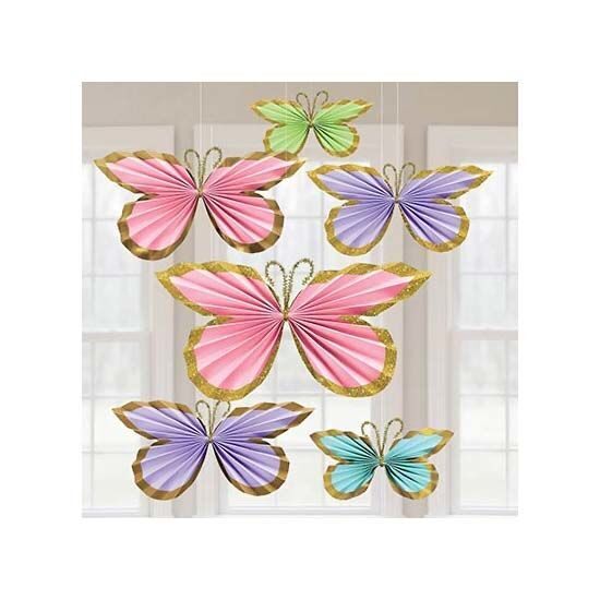 Нежные бабочки пастельных цветов создадут настроение весны в любой день. В наборе 6 бабочек размером 56, 43 и 28 см (по 2 штуки каждого размера). Фигуры собрать просто - их нужно раскрыть как вееры.