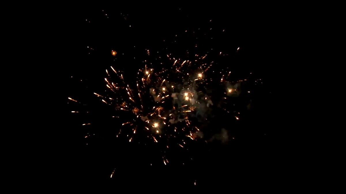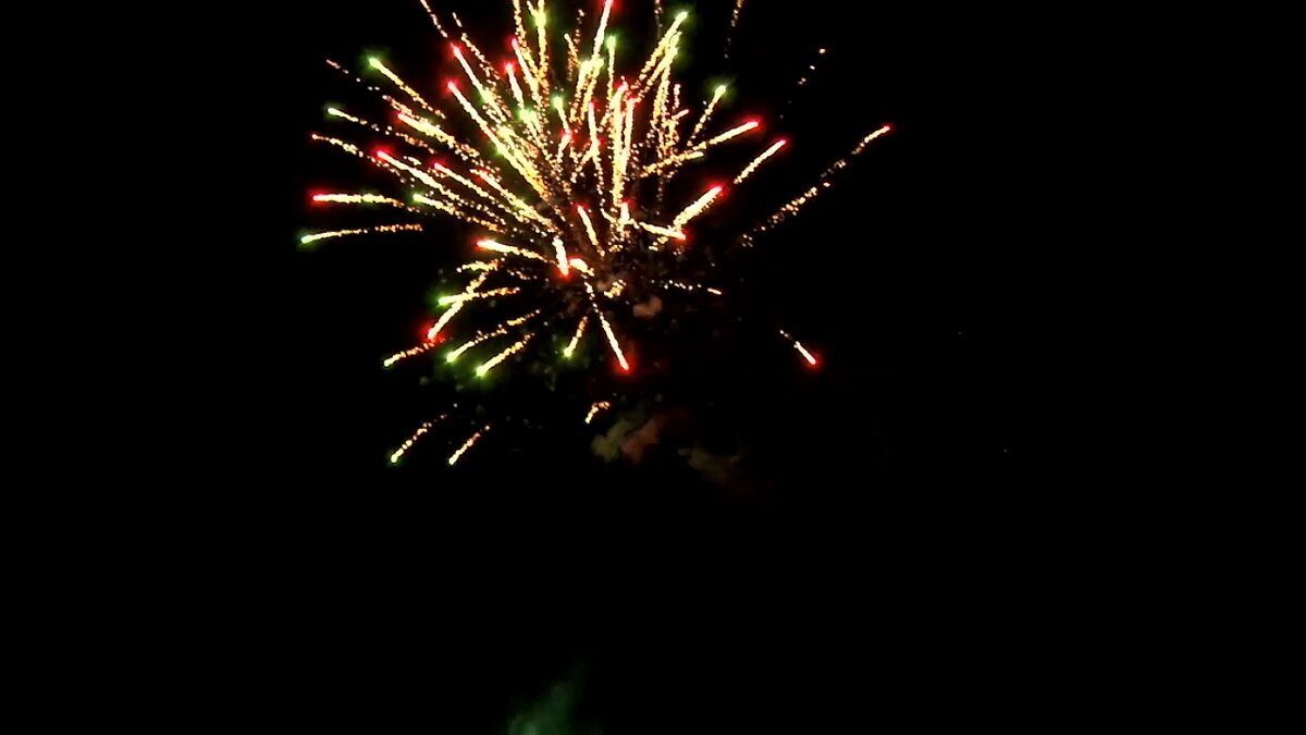 1. Салют из красных, зеленых, серебряных хризантем с мерцанием. 2. Золотые трещащие мерцающие огни.