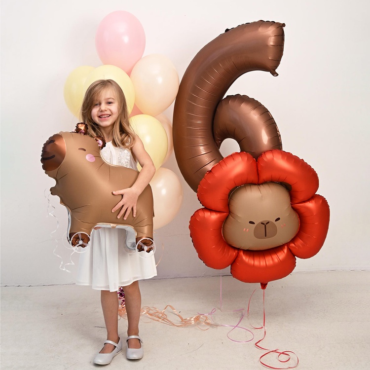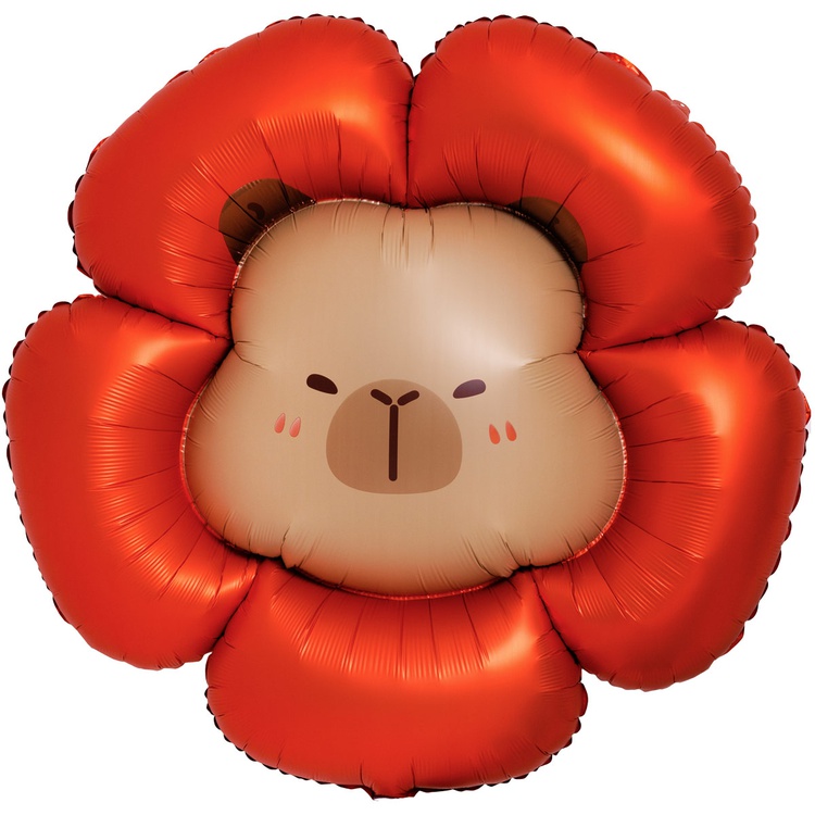 Фигурный фольгированный шар в форме очаровательной капибары в красном цветке. Такой необычный шар зарядит любой праздник позитивом! Рекомендуется надувать гелием — так фигура будет держать форму и парить в воздухе, создавая волшебную атмосферу. Имеет встроенный клапан -что упрощает надувание. Шар изготовлен из качественных материалов (полимерная фольгированная пленка). Размер шара в ненадутом виде 89x94см, в надутом виде 67х69 см.Внимание! Реальный цвет товара может незначительно отличаться от представленного на фотографии в зависимости от настроек вашего монитора.