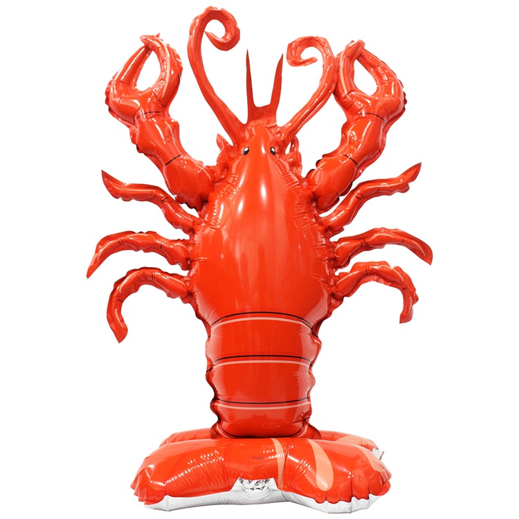 Объемный фольгированный шар высотой 64 см в форме милого лобстера. Данный шар представляет собой цельную фольгированную фигуру, которая надувается полностью через один клапан, находящийся сбоку, вместе с основной частью сразу же надуется и нижняя часть в виде подставки. Такую фигуру можно использовать как самостоятельную декорацию для любого праздника. Данный шар надувается ВОЗДУХОМ. Тонкая миларовая пленка (фольга на полиэтиленовой основе) позволяет шарам не сдуваться от недели до одного месяца.