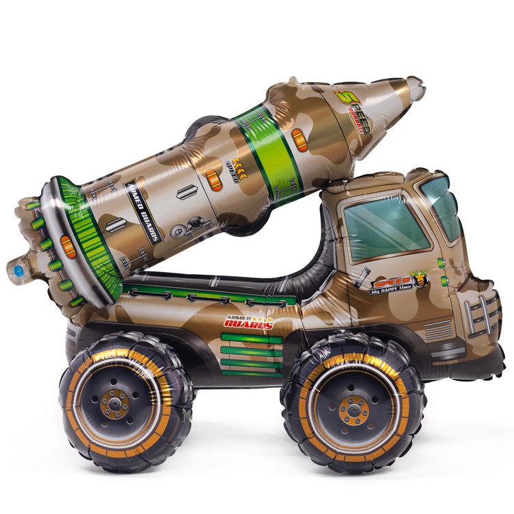 Объемная фольгированная фигура в форме Ракетной установки, наполняется воздухом. Шар-фигура состоит из пяти элементов: основа+пара передних колес+пара задних колес. Каждая часть шара имеет пластиковые кнопки- шарниры со встроенным клапаном. Перед надувом шара мелкие детали необходимо присоединить к основной части с помощью этих кнопок, а затем надуть при помощи ручного насоса через клапан, встроенный в основную часть шара. В комплекте поставляется трубочка, которую можно использовать для надува шарика. Выполнен из качественных материалов, что позволяет шару держать форму несколько недель. Благодаря хитрым креплениям детали шара могут поворачиваться на 360 градусов и принимать различные положения.