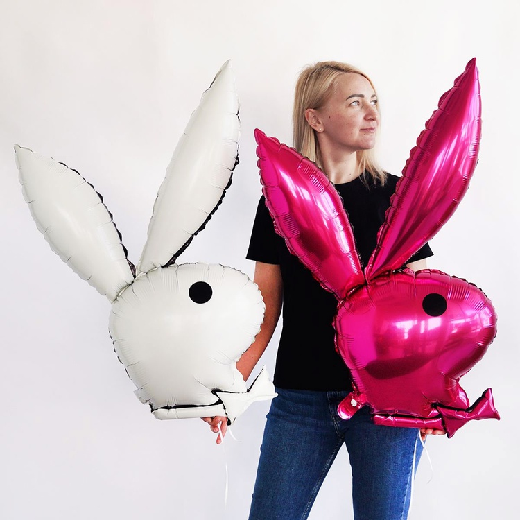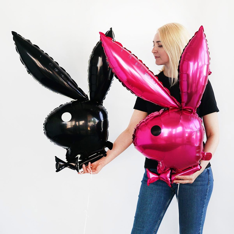 Сложная, объемная фигура в форме зайчика с галстуком-бабочкой. При надувании рекомендуется использовать воздух, на шаре предусмотрены специальные «ушки» для подвешивания. Имеет встроенный клапан - что упрощает надувание. Размер шара 57х97 см.