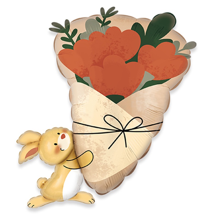 Фигурный фольгированный шар в форме милейшего зайчонка с огромным букетом. Самый трогательный способ сказать «Я тебя люблю!» или создать романтическое настроение. Идеальный символ заботы и нежности! Такой шар создаст атмосферу праздника и веселья, а также станет интересным акцентом для фотозоны, предоставляя возможность всем участникам сделать креативные и яркие фотографии. Шар изготовлен из качественных материалов (полимерная фольгированная пленка), имеет встроенный клапан, что упрощает надувание. Рекомендуется надувать гелием — так шар будет держать форму и парить в воздухе, создавая волшебную атмосферу. Размер шара в ненадутом виде 63(Ш)x68(В) СМ. Внимание! Реальный цвет товара может незначительно отличаться от представленного на фотографии в зависимости от настроек вашего монитора.