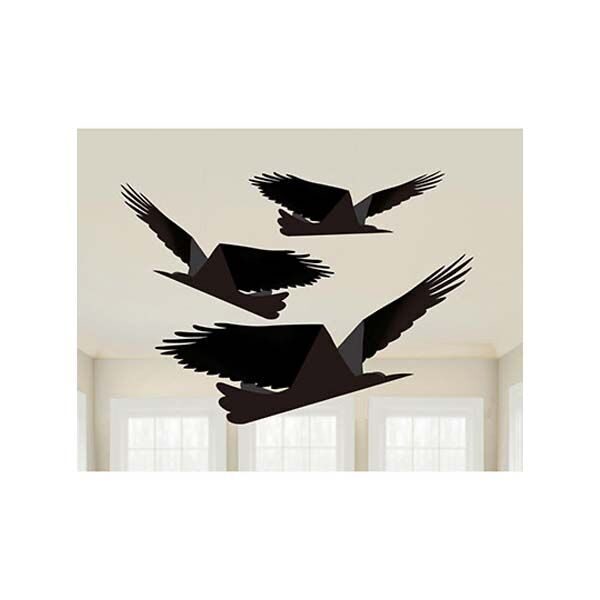 Черные вороны, кружащие над головой! Бойся! В упаковке 3 бумажные фигуры размером 33, 38, 43см.