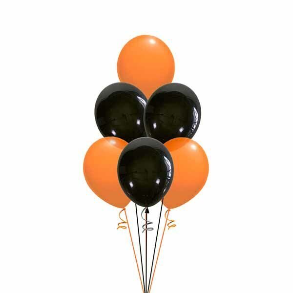 Воздушные шары на детский праздник Хэллоуин для мальчиков и девочек. Цвет шаров оранжевый и черный. С состав композиции входит: