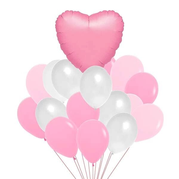 Фонтан из шаров с большим розовым сердцем. Большой фонтан из розовых и белых воздушных шаров, для девушки и девочки, Отличная идея для подарка на день святого валентина а также, на день рождение для мамы, внучки, девушки. В состав композиции входит: