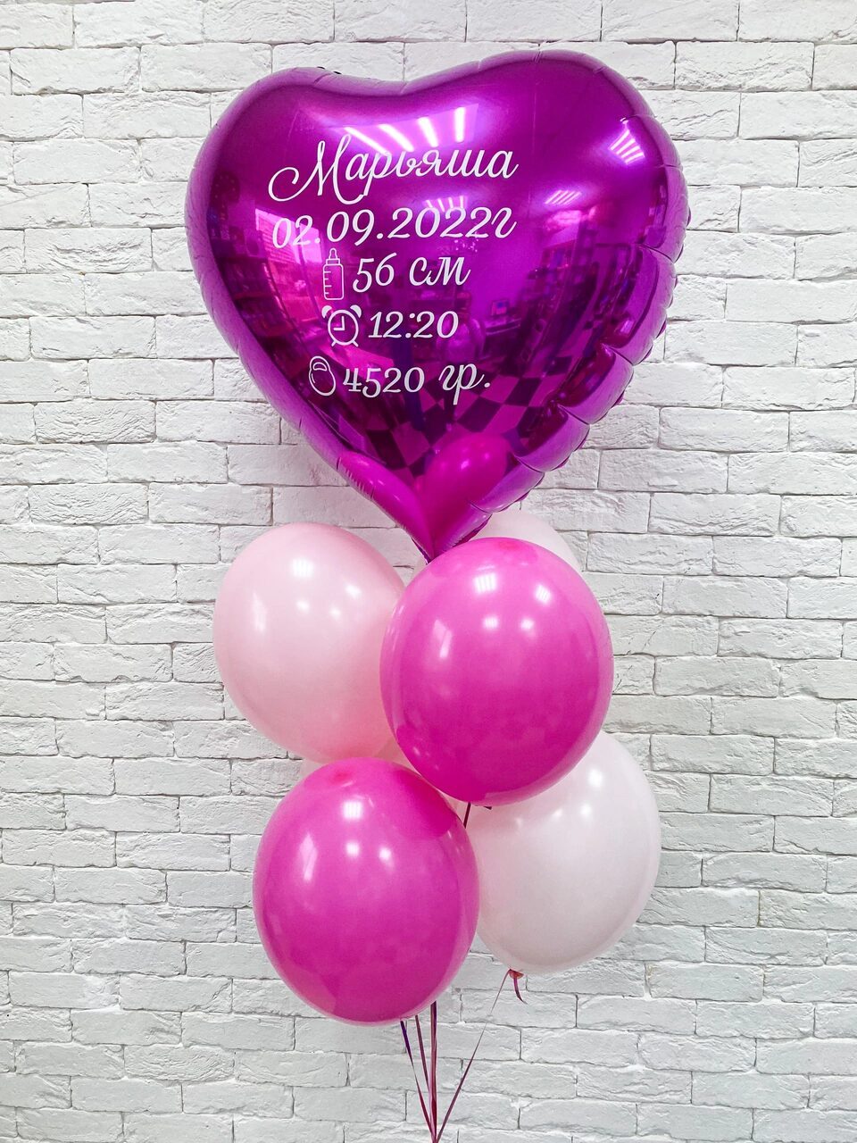 - Фонтан из шаров (Сердце большое с индивидуальной надписью, 6 латексных шаров пастель)