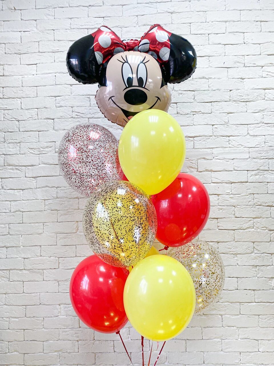 - Фонтан из шаров (фигурный шар Минни Маус, 6 латексных шаров ассорти, 3 латексных шара с конфетти)