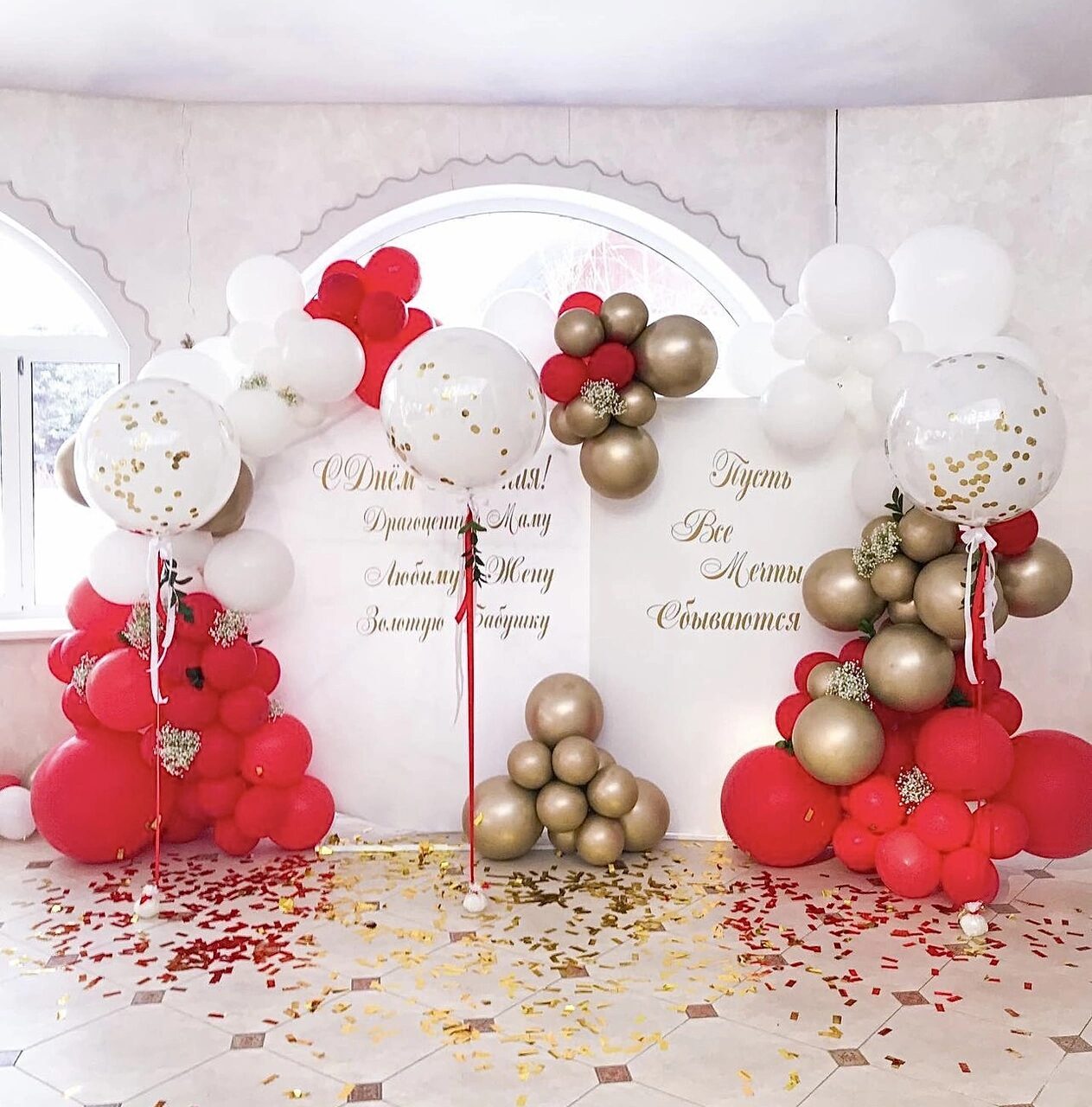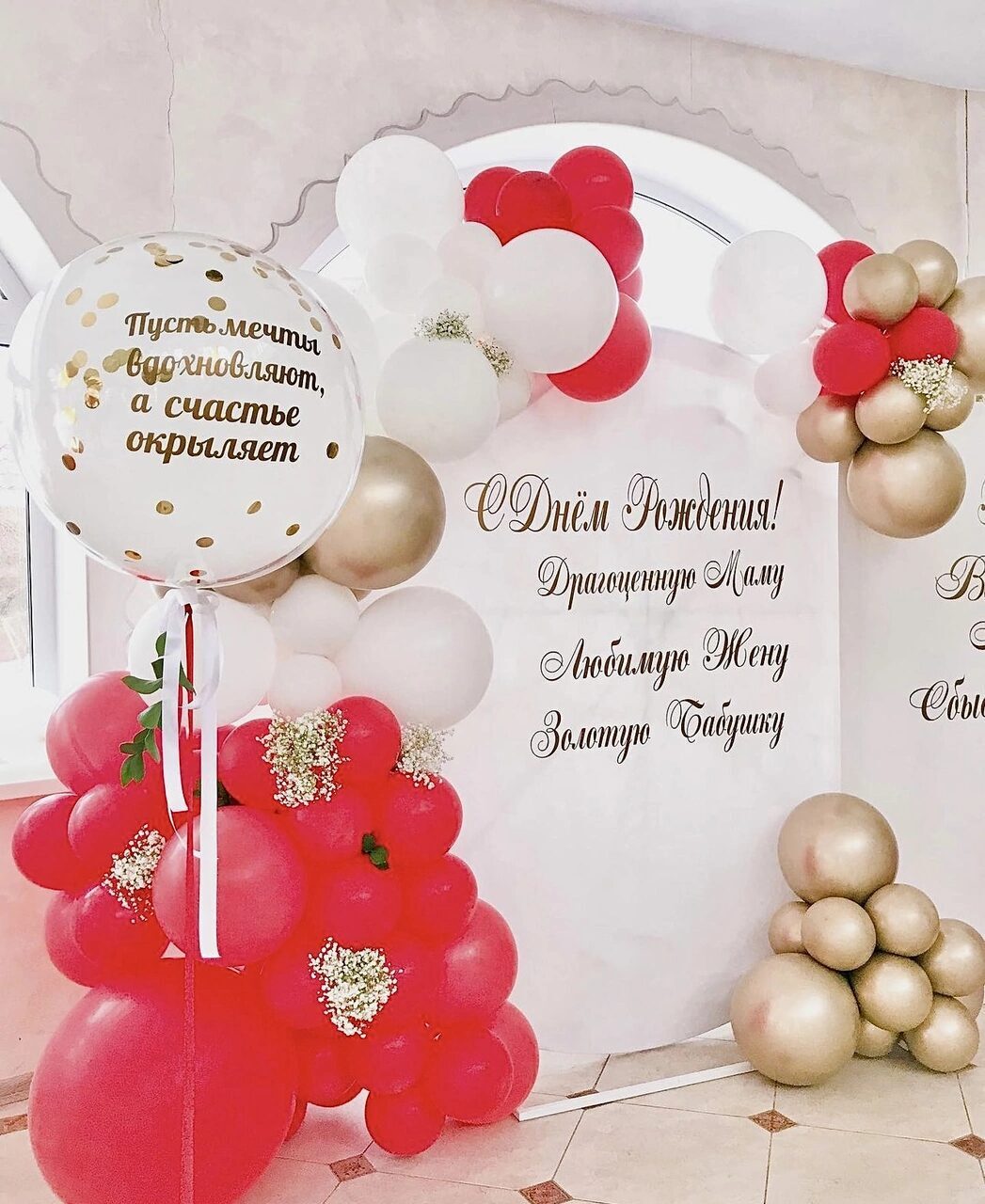 - Фотозона большая разнокалиберная с баннером и воздушным шаром
