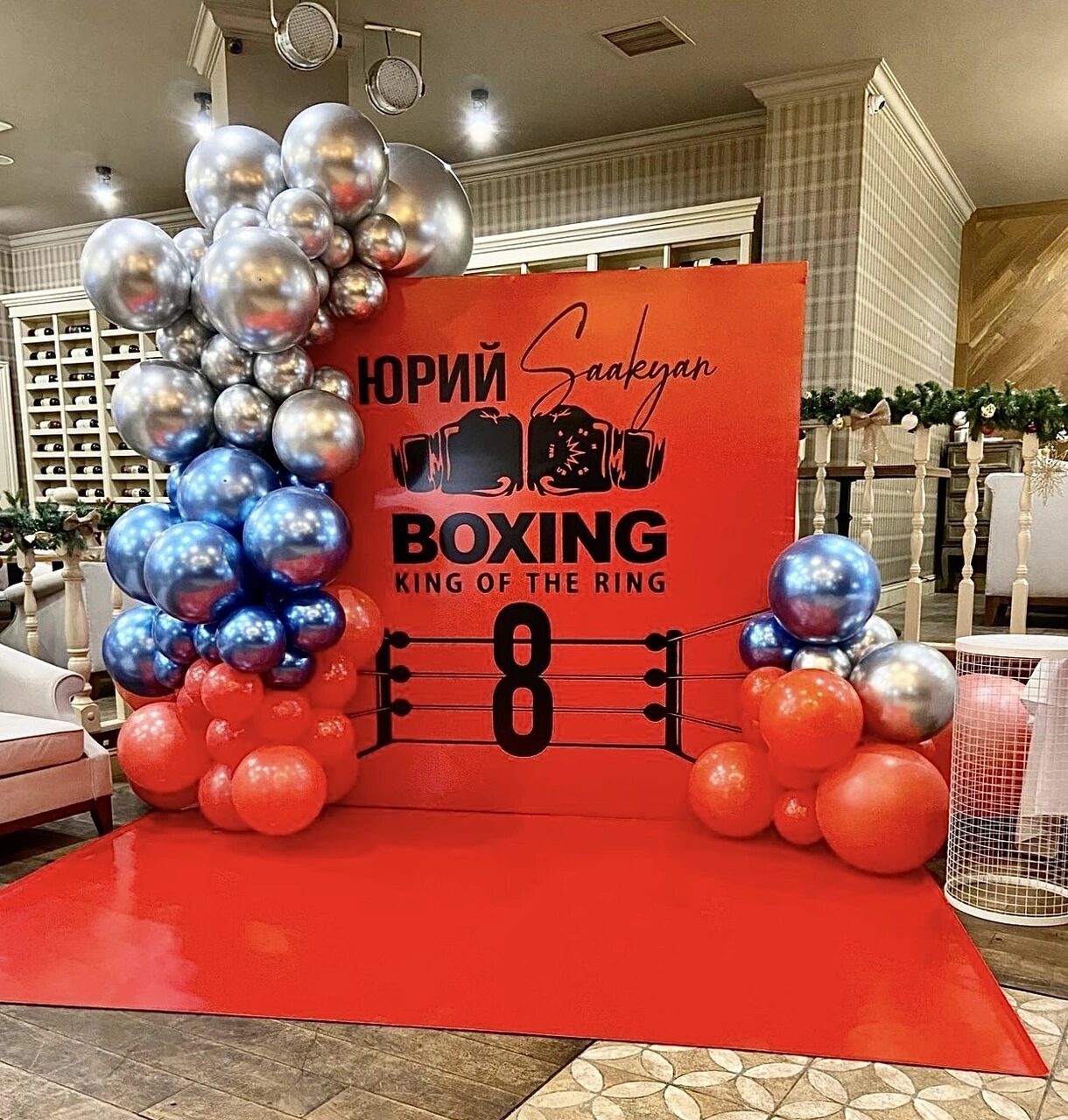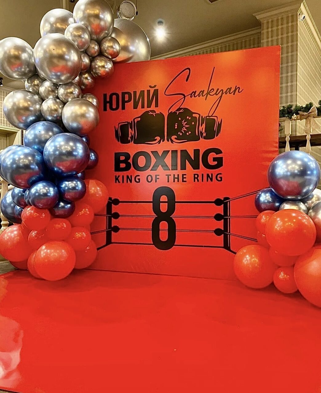 - Фотозона на квадратном каркасе, разнокалиберная с баннером под заказ и удлиненным полом для фотосессий