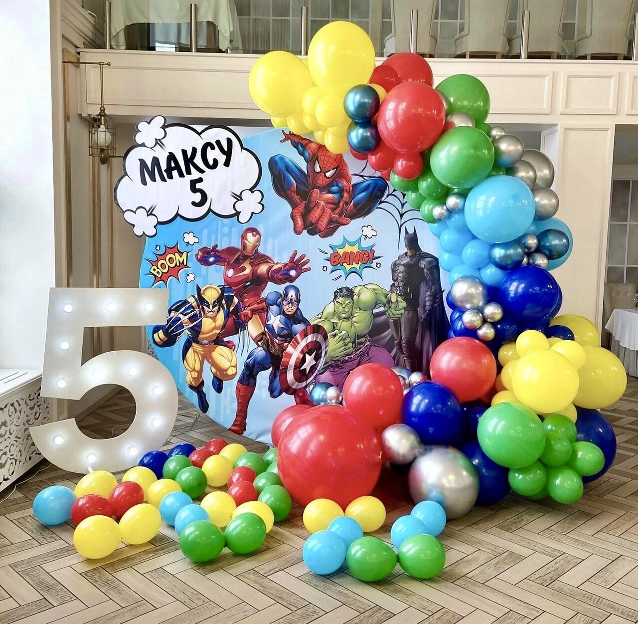 - Фотозона круглая, разнокалиберная с баннером под заказ и цифрой