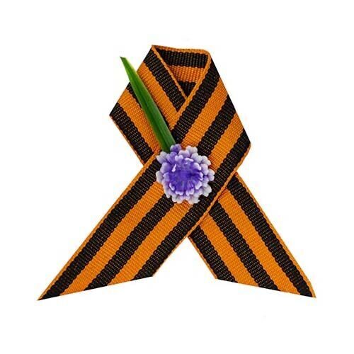 Георгиевская ленточка с цветком в честь Великой Победы. Цветы разного цвета и формы. Помним! Гордимся!