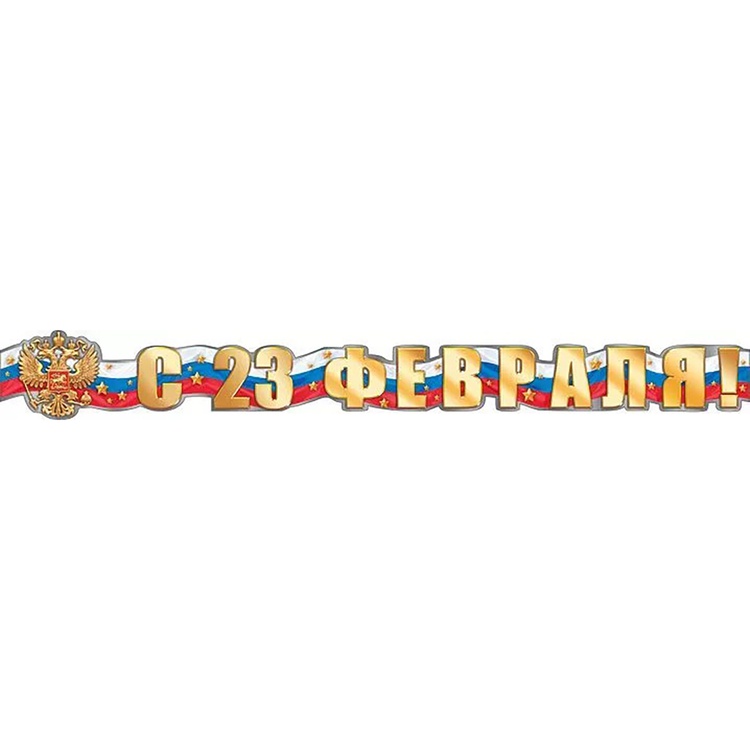Картонная гирлянда-растяжка «С 23 Февраля!» поможет с легкостью украсить помещение на День защитника Отечества. Это отличный способ поздравить всех мужчин — членов семьи, друзей, коллег. Украшение прекрасно подойдет для дома, школы, офиса. Гирлянда украшена государственными символами — российским триколором и гербом. Растяжка изготовлена из плотного картона — материал прочный, хорошо держит форму. Она не требует сборки! Достаточно вынуть украшение из упаковки развернуть и повесить на стену, стенд, доску. Длина гирлянды — 1 м 65 см. Для крепления к поверхности можно использовать обычные булавки, канцелярские кнопки или скотч. С помощью такой растяжки можно создать фотозону и организовать праздничную фотосессию.