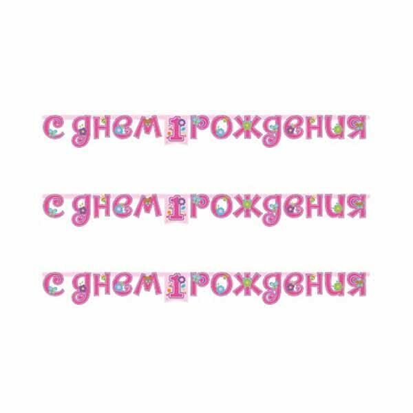 Цветы и сердца, божьи коровки, и, конечно, бабочки. Вашей красавице уже 1 год! Гирлянда-поздравление идеально подойдёт для оформления годовасия. Длина гирлянды 210 см, буквы скреплены между собой.