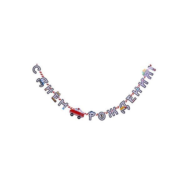 «Вот автобус, вот машина; Едет самосвал большой; Вот идет трамвай с дугой; В небе самолет летит; Рядом вертолет гудит». Стихов про транспорт много, потому что машинки – лучшие друзья всех мальчишек! А праздник принято проводить с лучшими друзьями! Длина поздравительной гирлянды 220 см, буквы скреплены между собой, на краях гирлянды - петельки, чтобы Вам было удобно закрепить гирлянду.