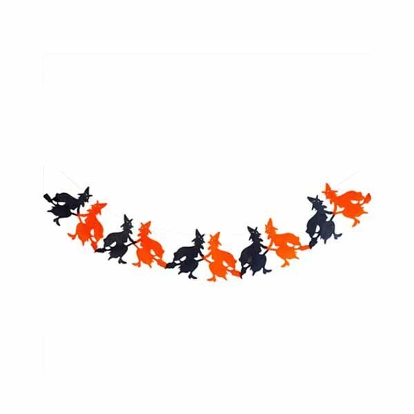 Красивая фигурная гирлянда - объемное, декоративное украшение интерьера из гофрированной бумаги-тишью. Повторяющийся элемент выполнен в форме Ведьмы на метле. Гирлянда станет прекрасным украшением вечеринки в стиле "Хэллоуин".