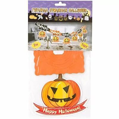 Объемная гирлянда-сеточка украшена подвесками-тыквами с надписями Happy Halloween. Устройте грандиозный страшный праздник! Длина гирлянды - 200 см.