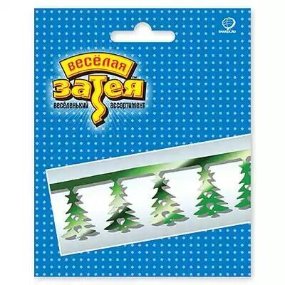 Изящная гирлянда с повторяющимися елочками выполнена из зеленой фольги. Она может выступать как самостоятельное украшение интерьера, так и стать елочной гирляндой. Длина гирлянды 300 см, высота елочек - 10 см.