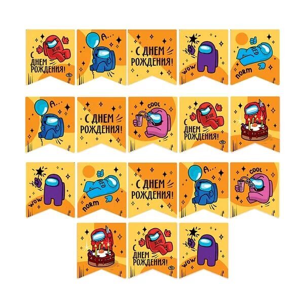Гирлянда Флажки, Игра Среди Нас, С Днем Рождения!, 300 см, 1 шт.