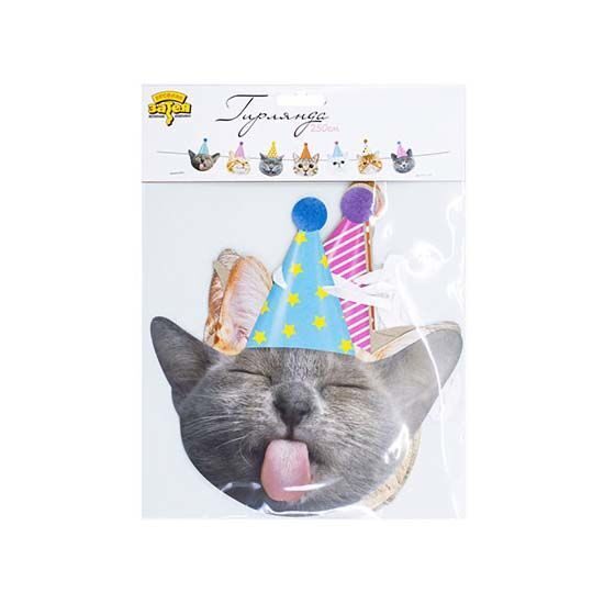 Забавная гирлянда из смешных котиков в колпачках отлично украсит Ваш праздник. Длина гирлянды 250 см.