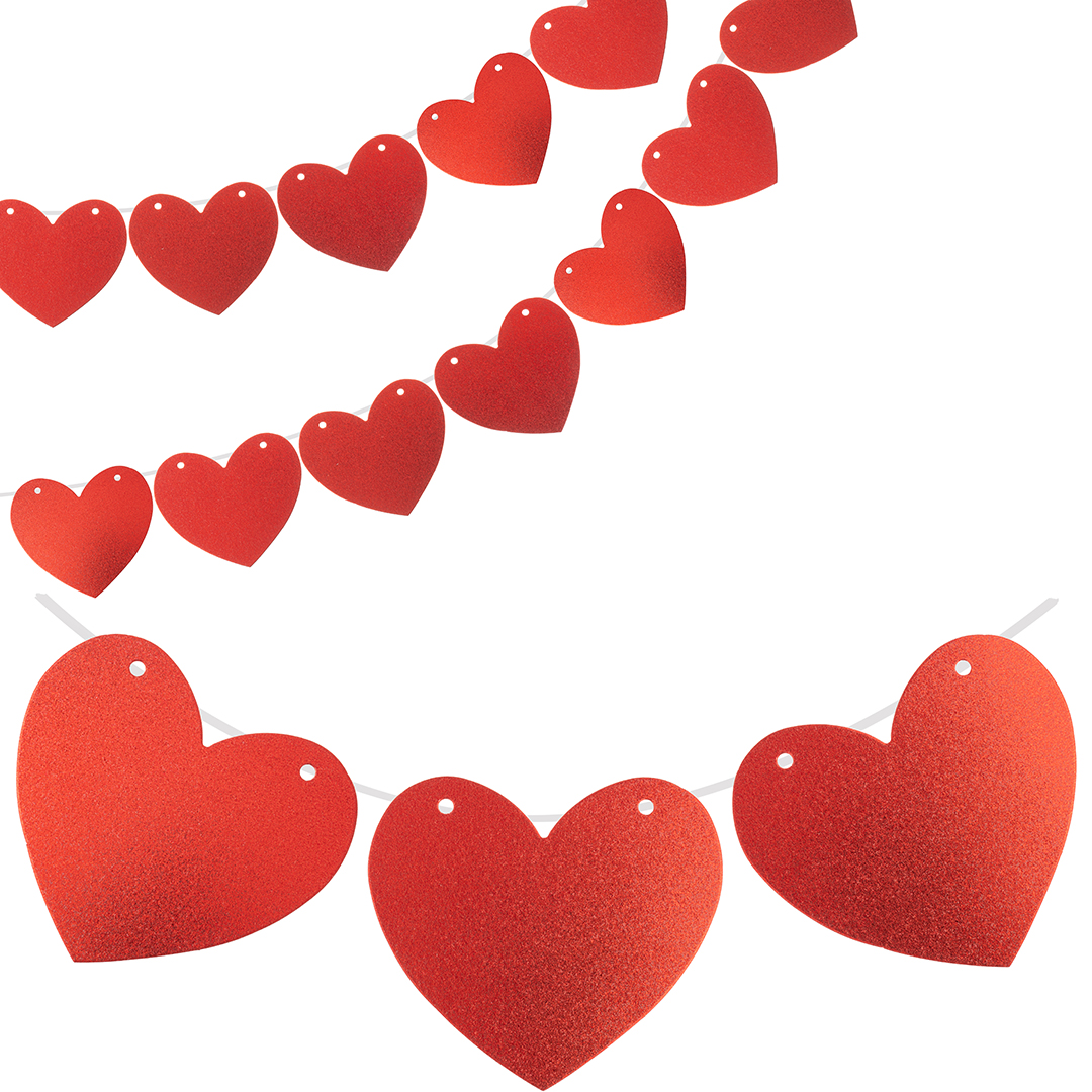 Гирлянда-подвеска Сердце, Красный, с блестками, 300 см