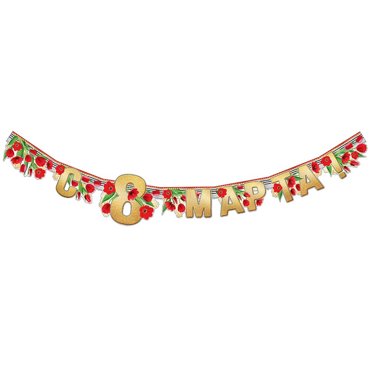 Подарите близким праздничное настроение с нашей гирляндой-буквами "С 8 Марта"! Яркие буквы с изображением алых тюльпанов и сверкающими цветными блёстками создадут атмосферу настоящего праздника. Идеально подходит для украшения интерьера, фотозон, подарков. Добавьте немного волшебства в ваш праздник вместе с нами!