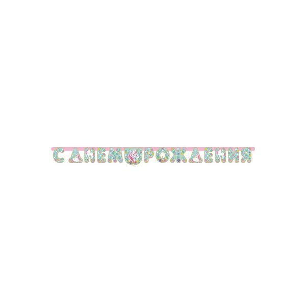 Мягкие мятные и нежно-розовые оттенки, такие как во сне про волшебных единорогов. Поздравительная гирлянда С Днем Рождения, непременный атрибут для вечеринки! Длина гирлянды 210 см, буквы скреплены между собой.