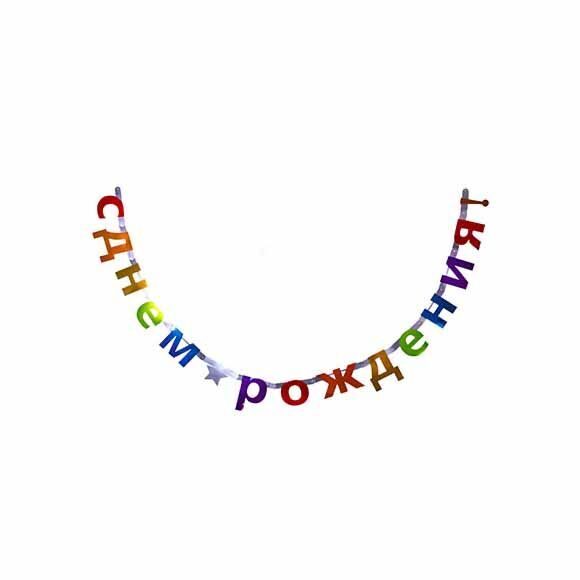 Разноцветное блестящее поздравление с днём рождения! Пусть праздник пройдет феерически! Длина гирлянды 240 см, буквы скреплены между собой, на концах гирлянды петельки для удобного крепления.