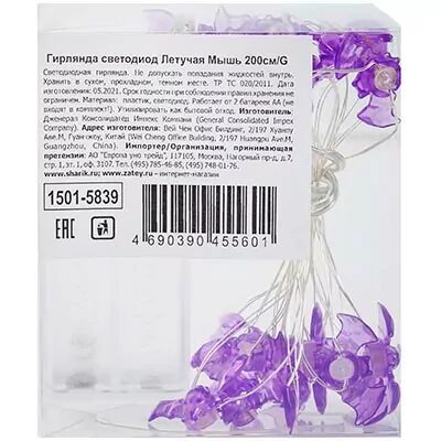 Гирлянда со светящимися летучими мышами - отличное решение для декора интерьера на Хеллоуин. Длина 200см. Для работы требуются 2 батарейки АА (не входят в комплект).