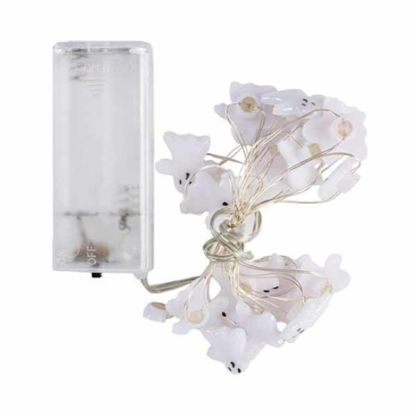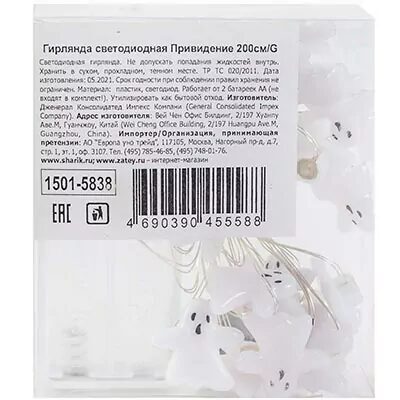 Гирлянда со светящимися привидениями - отличное решение для декора интерьера на Хеллоуин. Длина 200 см. Для работы требуются 2 батарейки АА (не входят в комплект).