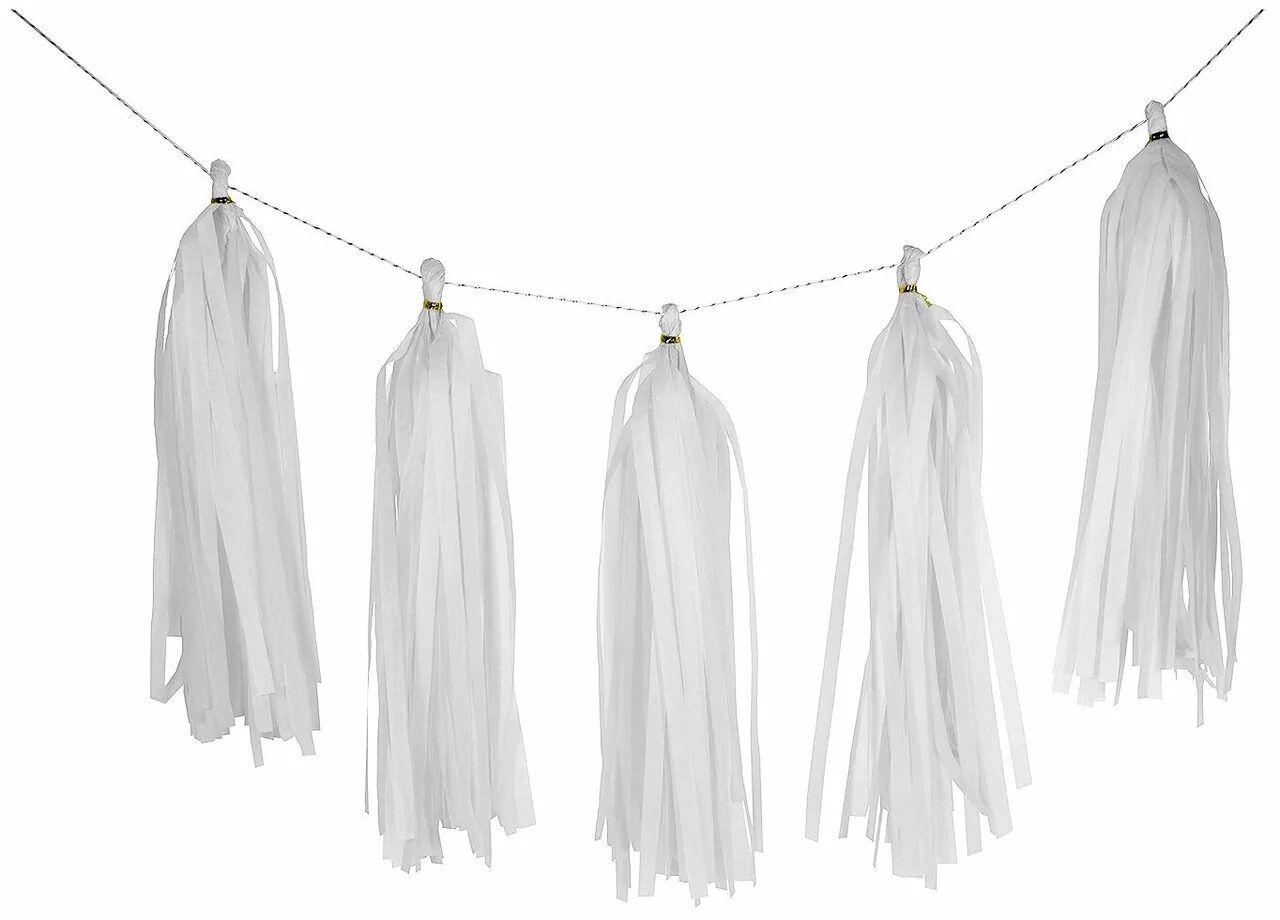Белая гирлянда Тассел - популярная гирлянда с пушистыми кисточками из бумаги тишью. Гирлянда состоит из 10 кисточек длиной 35 см и ленты 3 м. Вы легко соберете гирлянду самостоятельно, а также определите оптимальное для вас расстояние между кисточками. Таким декором можно украсить большой воздушный шар, подвесить гирлянду к потолку или растянуть ее горизонтально, оформить зону сладкого стола.