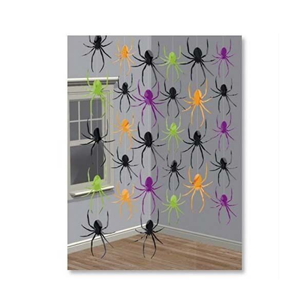 Гирлянда вертикальная Пауки 2,1 метра. Жуткая декорация для вечеринок в стиле Хэллоуин или для страшного карнавала. За счет легкого сквозняка эти пауки колышатся и наводят ужас на окружающих! Бойтесь их! Они могут на вас напасть! В наборе 6 гирлянд по семь разноцветных пуков на каждой.