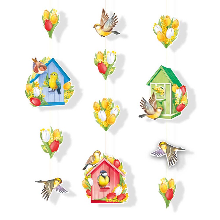 Гирлянда на нитке с букетами тюльпанов и птичками. Украсит интерьер к весне, к празднику 8 Марта.