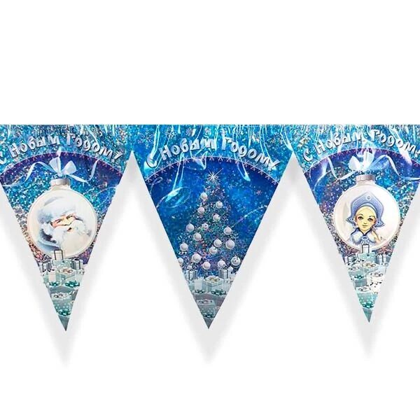 Какой же новый год без красавицы Снегурочки, дедушки Мороза и елочки?! Пусть он будет по-славянски добрым и хлебосольным! Гирлянда и з флажков с голографическим рисунком выполнена из полиэтилена. Длина гирлянды 360 см.