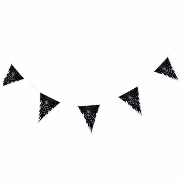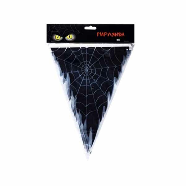 Полиэтиленовая гирлянды-вымпел - черные флажки с изображением Паутины - отличное решение для украшения интерьера на Хеллоуин, Пиратскую и др. тематическую вечеринку. Длина 6 метров.