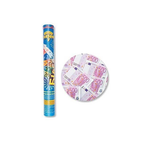 Пневматическое устройство, аналог хлопушки, абсолютно безопасное, предназначено для использования в помещении и на улице, дальность выстрела 8-10 м. Корпус хлопушки состоит из двух частей: пневматического баллона со сжатым воздухом и картонного цилиндра с наполнителем. Баллон изготовлен из металла, надежен и безопасен при хранении и в использовании, обладает высокой прочностью, чтобы выдержать давление воздуха. Хлопушка с наполнением в виде бумажных купюр номиналом 500 евро.