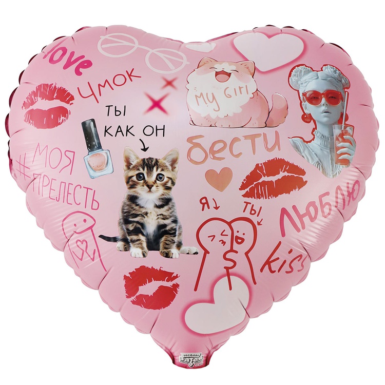 Этот фольгированный шар в форме сердца — настоящий взрыв позитива и нежности! Нежно-розовый цвет основы создаёт атмосферу лёгкости и романтики, а множество ярких деталей делают его по-настоящему уникальным и запоминающимся. Этот шар станет: идеальным подарком для лучшей подруги — он передаст всю глубину вашей дружбы; ярким украшением для девичника или дня рождения; оригинальным элементом фотозоны, который привлечёт внимание гостей; милым акцентом в интерьере, поднимающим настроение; трогательным способом сказать «я ценю тебя» без слов. Позвольте этому шару добавить немного радости и тепла в жизнь ваших близких!