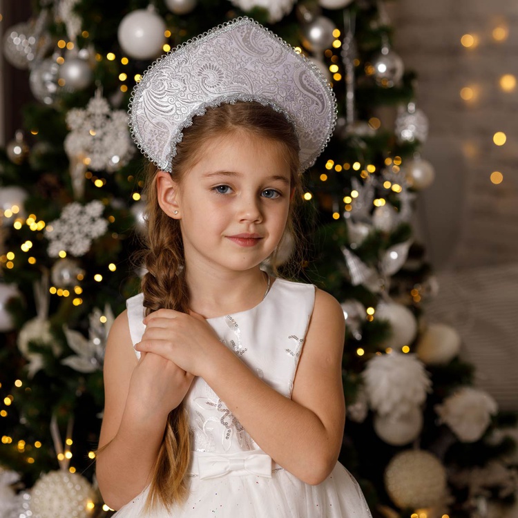 Кокошник-Ободок Узор Зимний серебро