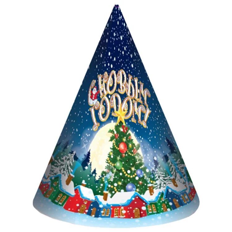Новогодние колпаки для тех, кто решил отметить праздник на природе или в теплой дружеской компании. Заснеженные домики с пушистой красавицей елкой на площади! В наборе 8 колпаков на резинках.