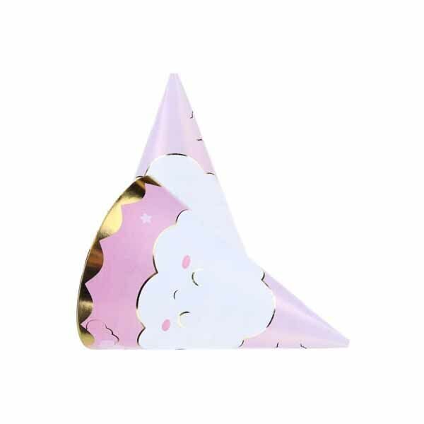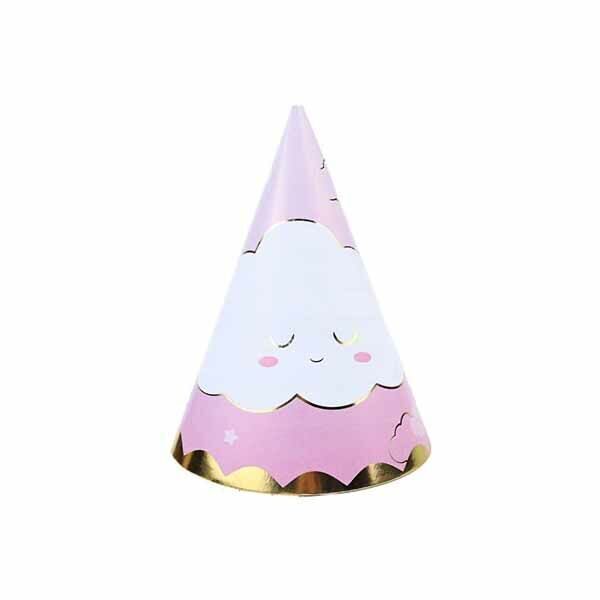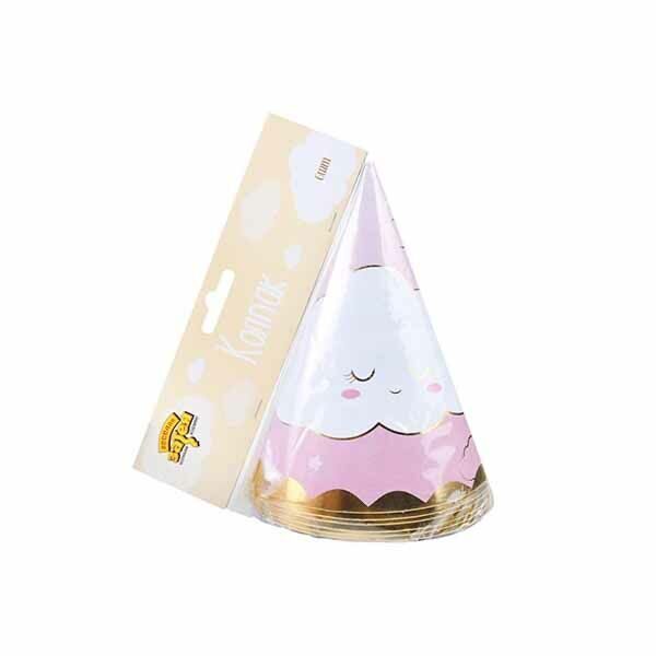 Спящие облака и звёзды, нежно хранящие самые светлые мечты и грёзы малышей! Мягкие оттенки розовой ванили и небесно-голубого, подчеркнутые тонкими золотыми нитями. В упаковке 6 розовых бумажных колпачков на резинках.