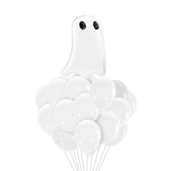 Яркая композиция из воздушных шаров Белое привидение. Яркая Композиция из воздушных шаров на праздник Хэллоуин для мальчиков и девочек. Яркое украшение детской фотозоны в стиле Хэллоуин для детей и взрослых. Композиция шаров на Хэллоуин состоит из: