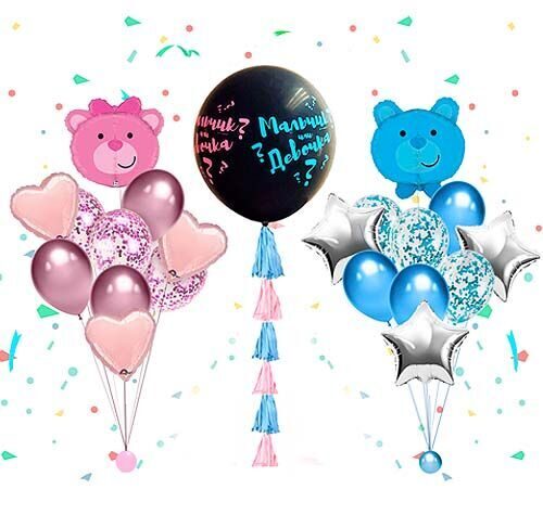 - Наполнение шара: конфетти и воздушные шары, согласно полу ребенка