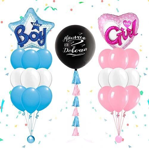 - Наполнение шара: конфетти и воздушные шары, согласно полу ребенка