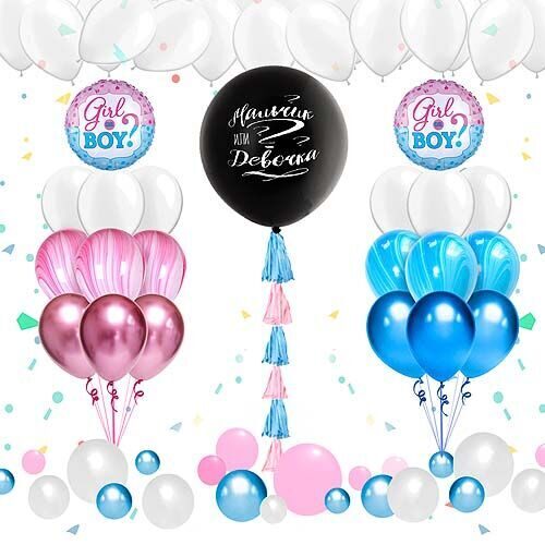 - Наполнение шара: конфетти и воздушные шары, согласно полу ребенка