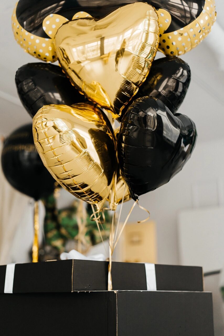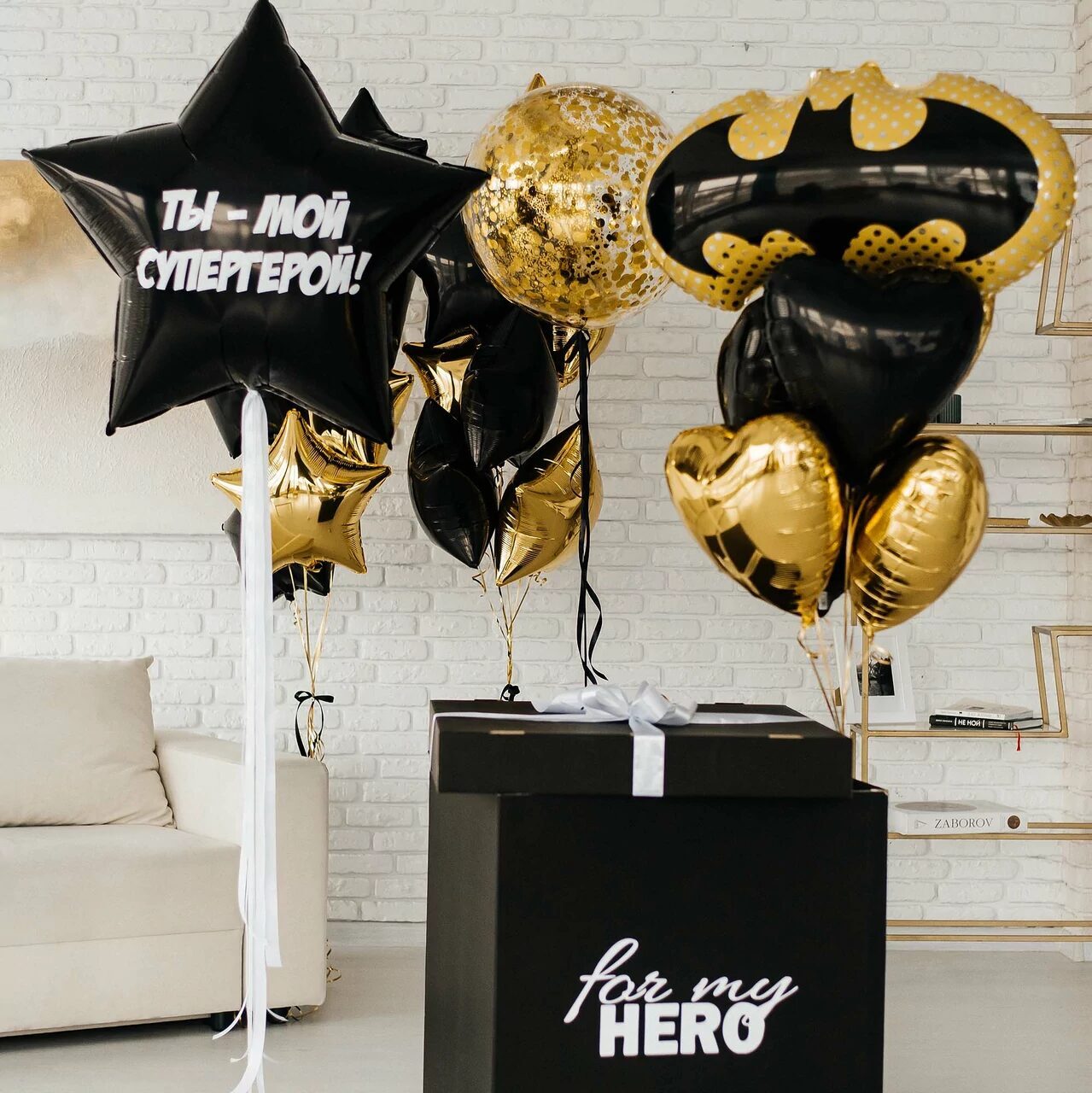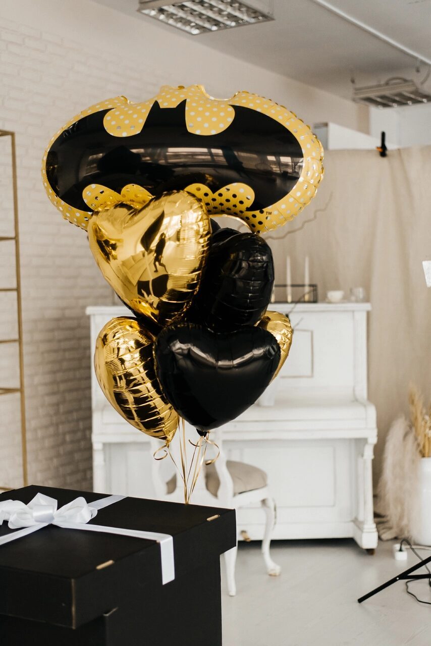 - Фонтан из 6 фольгированных сердец и фигурного шара "Бэтмен"